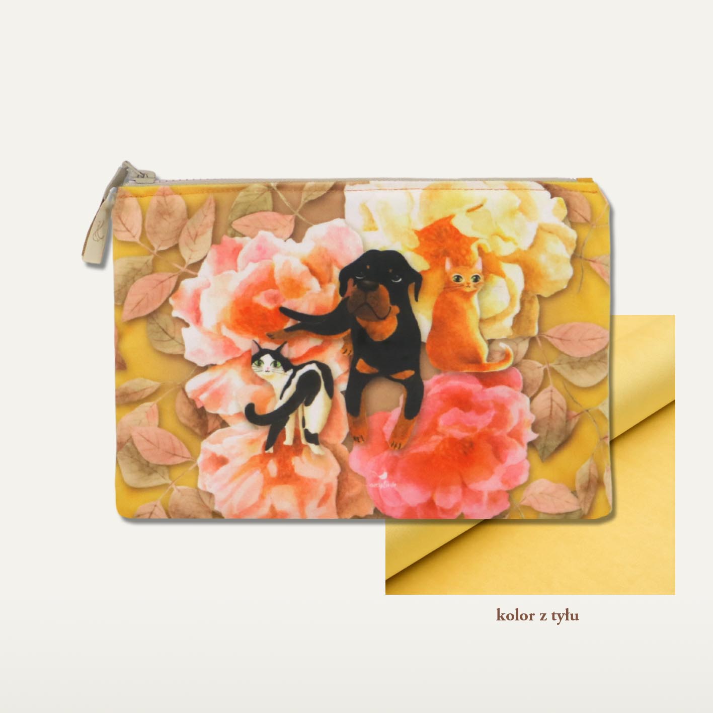 Kosmetyczka „Spotkanie w ogrodzie” płaska, żółty tył, beżowy zamek